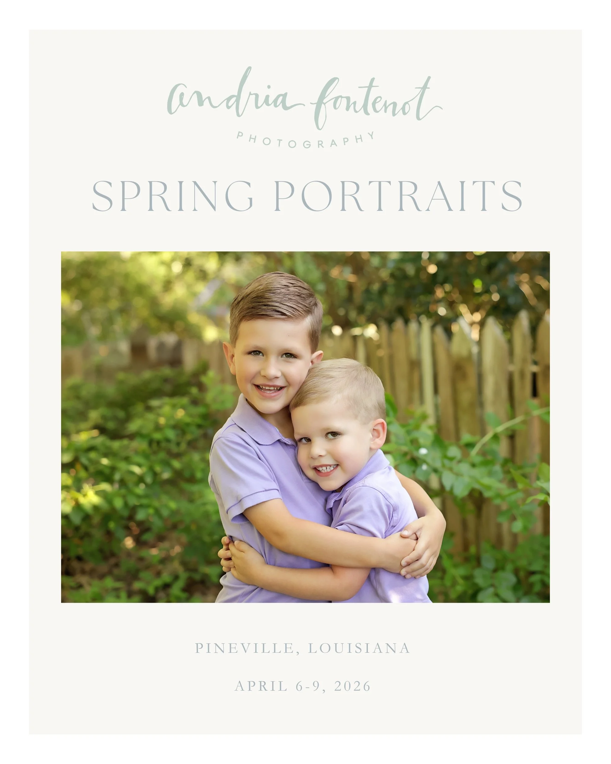 These spring mini sessions are designed to create portraits that you will cherish for years to come. Whether you’re updating family portraits, celebrating a growing milestone, or capturing your children just as they are in this season, these sessions offer a fun experience with beautiful portraits.